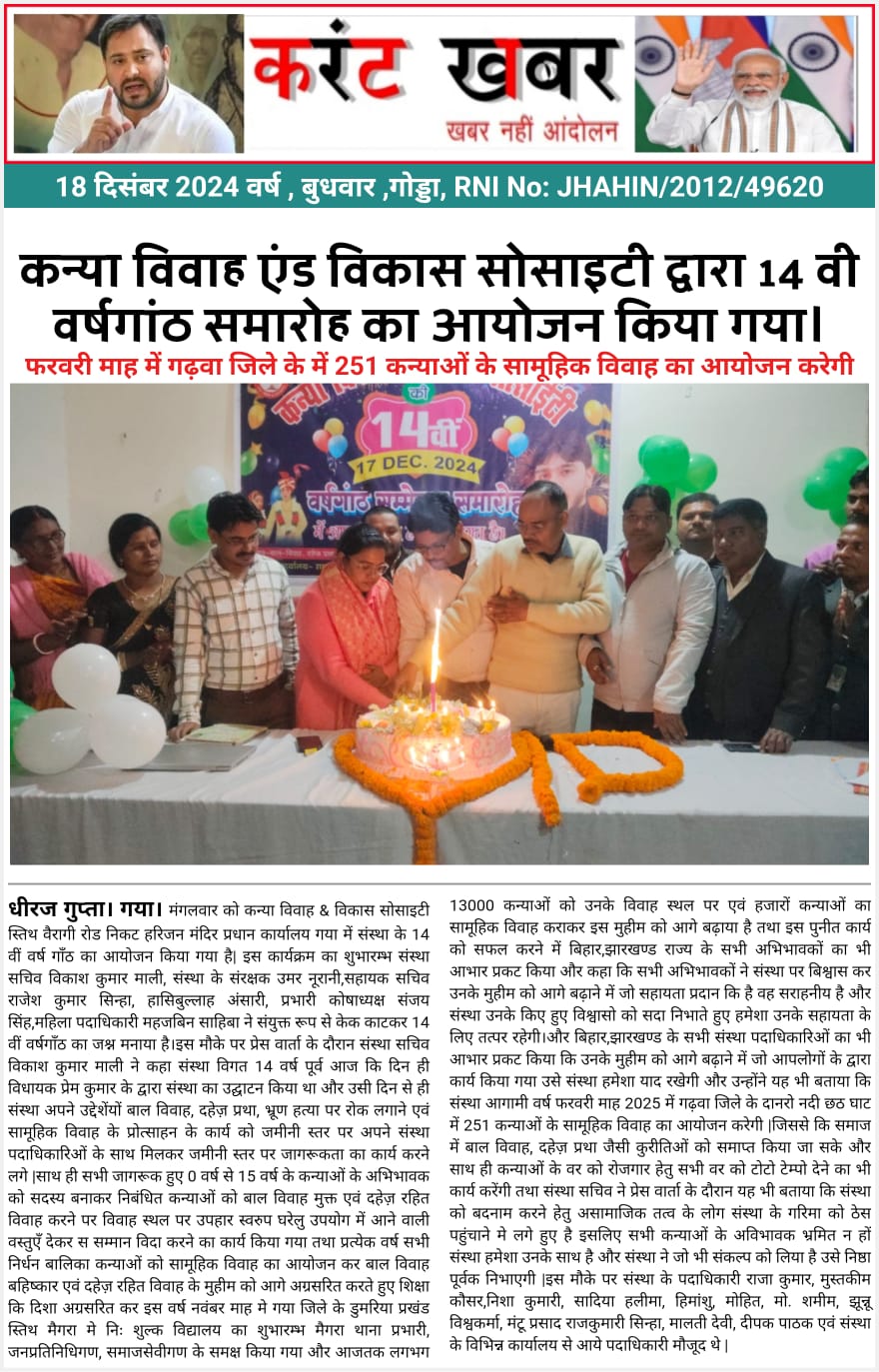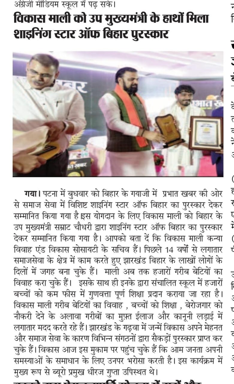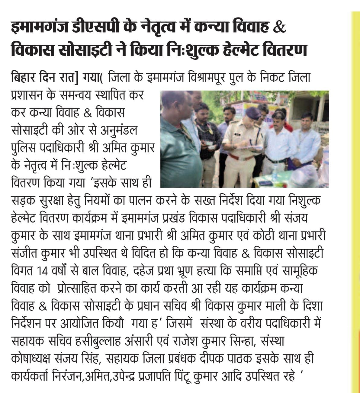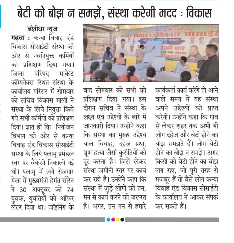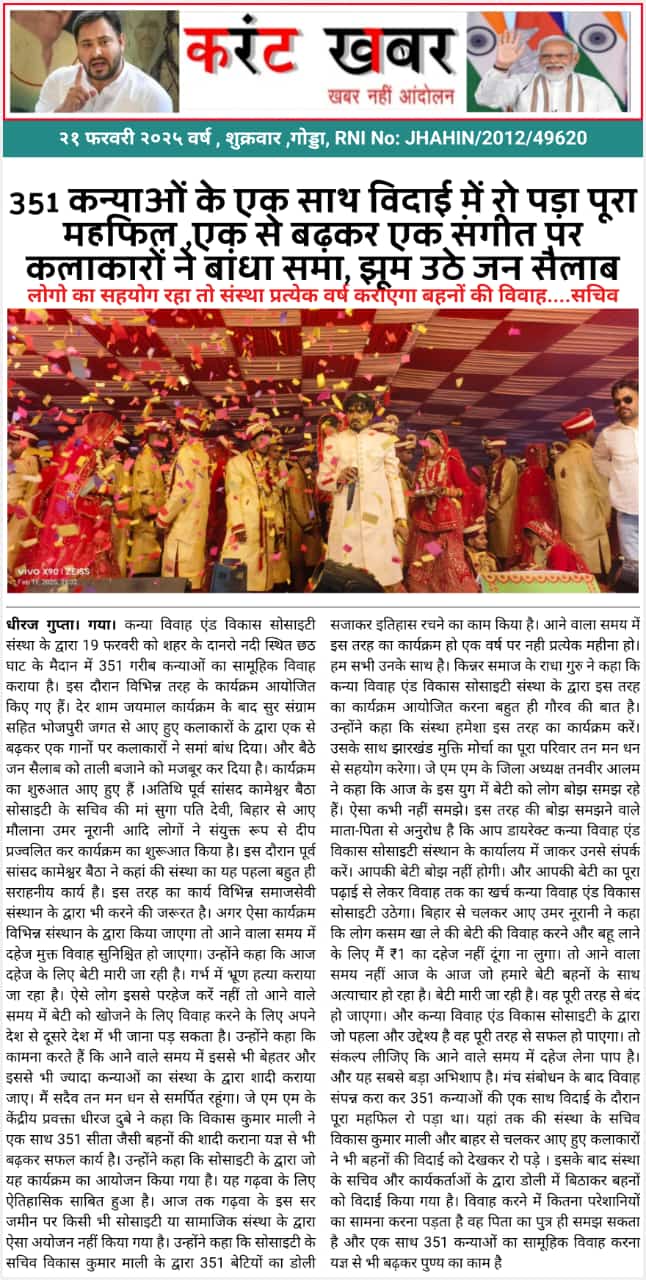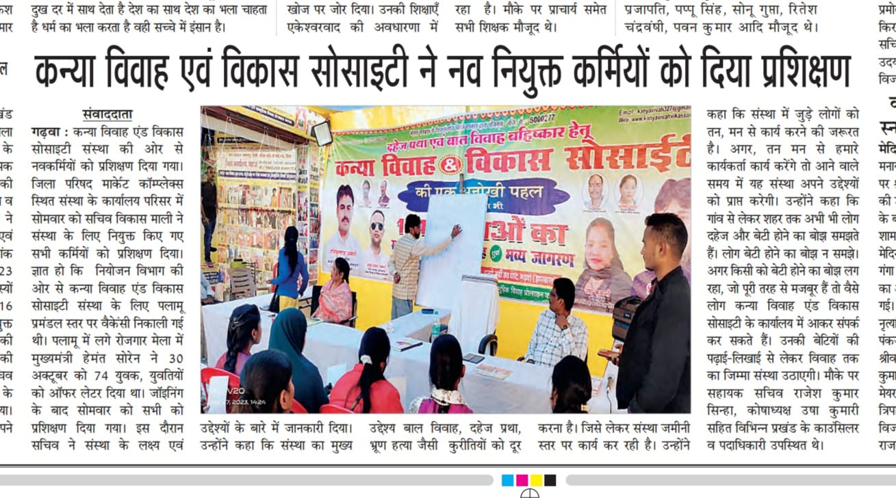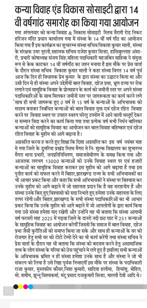 कन्या विवाह & विकास सोसाईटी द्वारा गया जिले के आमस प्रखण्ड में नवविवाहित कन्याओं के घर पर संस्था के प्रभारी पदाधिकारी संजय कुमार सिंह एवं सर्वेयर हिमांशु सिन्हा के द्वारा विदाई सामग्री