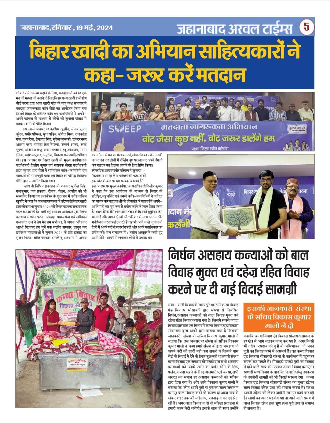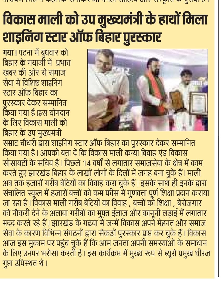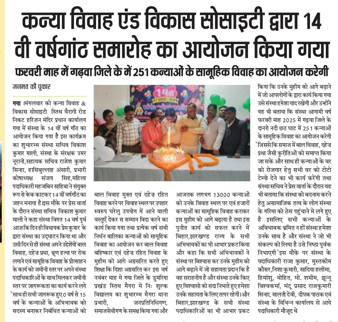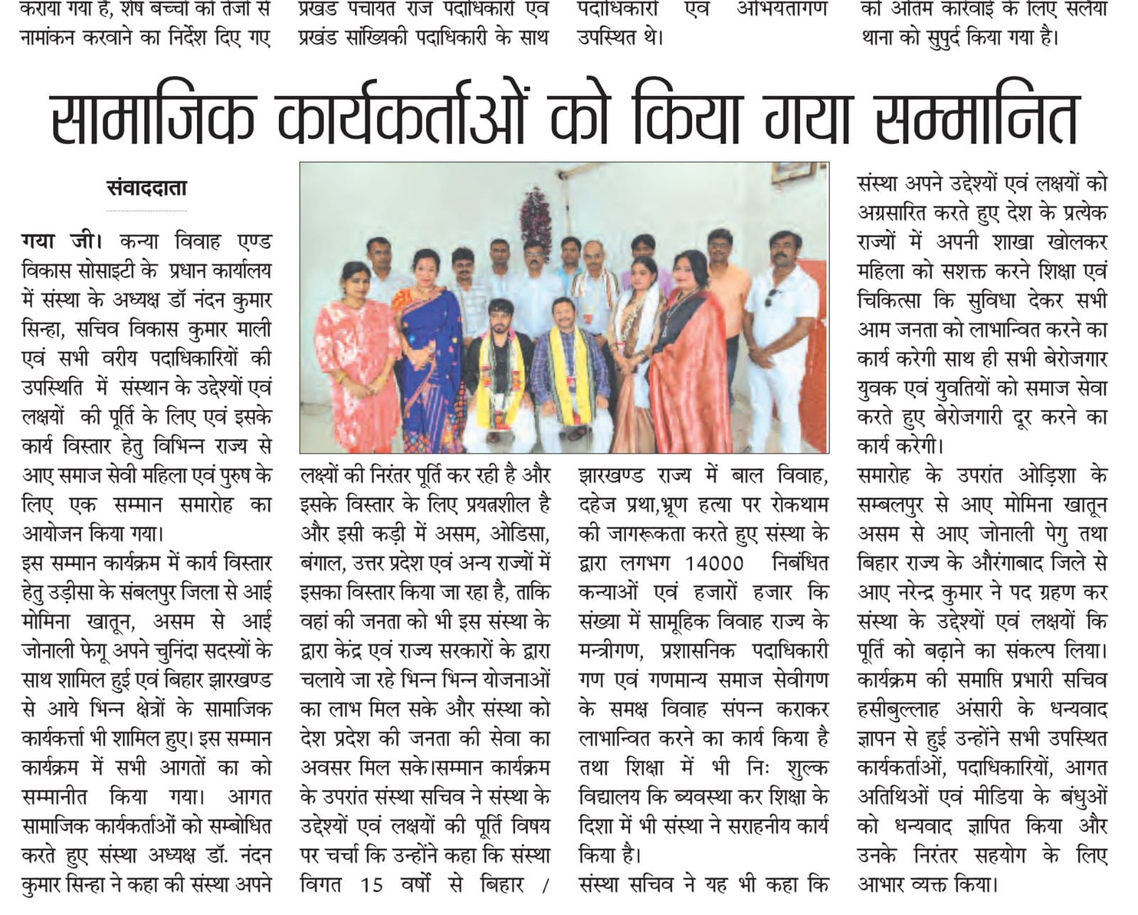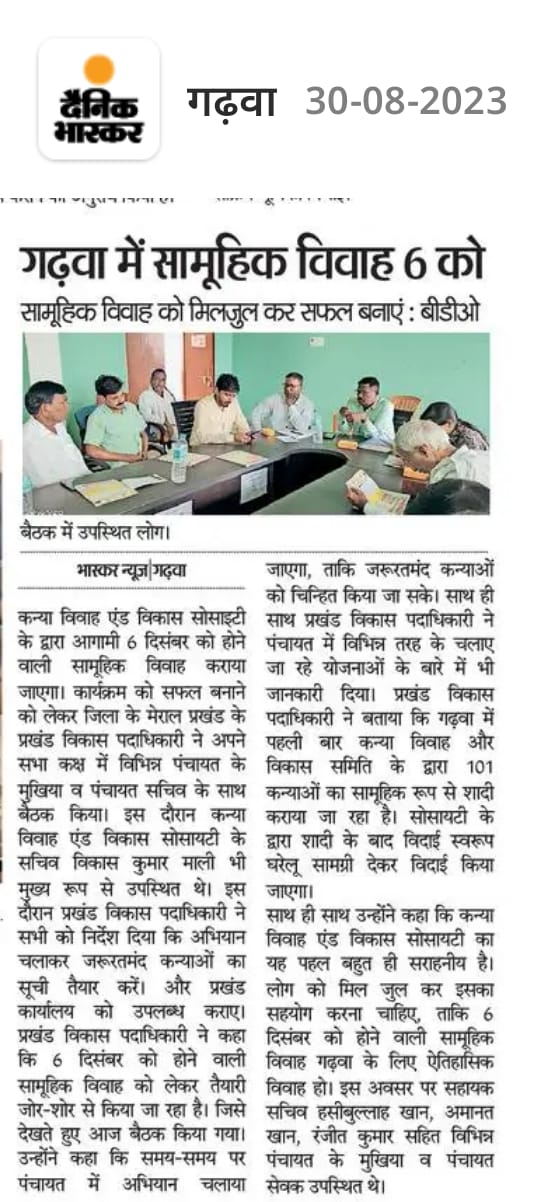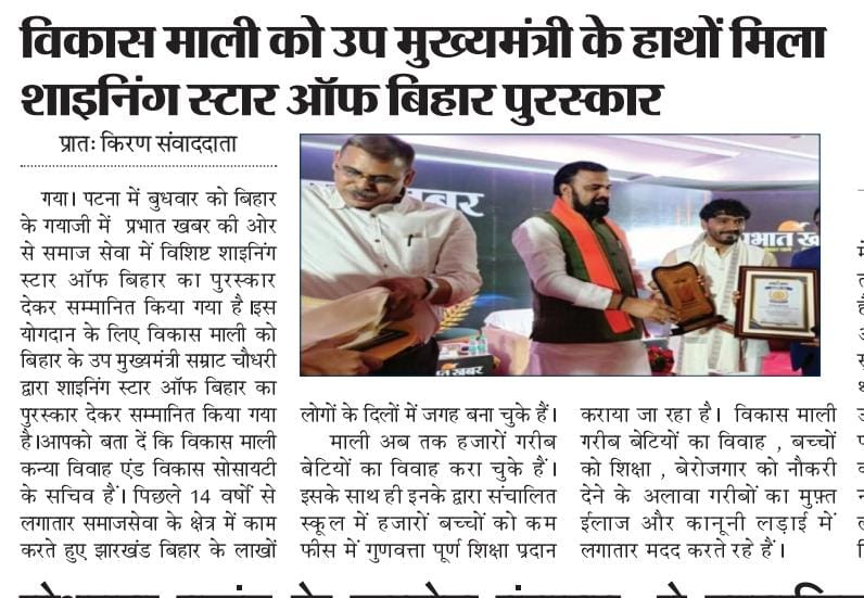 कन्या विवाह & विकास सोसाईटी द्वारा गया जिले के आमस प्रखण्ड में नवविवाहित कन्याओं के घर पर संस्था के प्रभारी पदाधिकारी संजय कुमार सिंह एवं सर्वेयर हिमांशु सिन्हा के द्वारा विदाई सामग्री